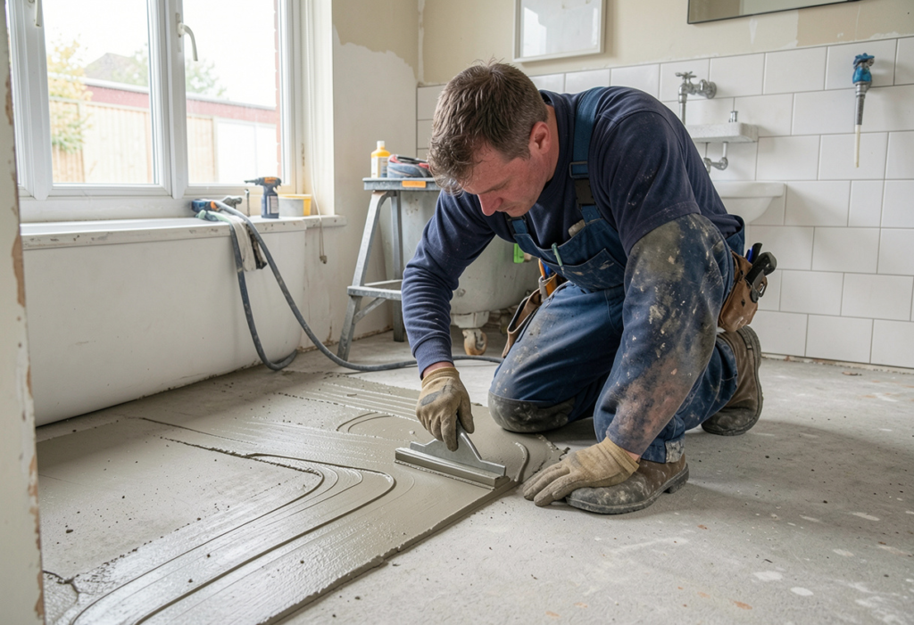 In shower recesses specifically, the fall needs to be more pronounced — typically steeper than the main bathroom floor — and the levelling work needs to meet the waterproofing requirements for a compliant wet area. The levelled surface has to be stable, fully bonded, and compatible with the membrane system going over the top of it.